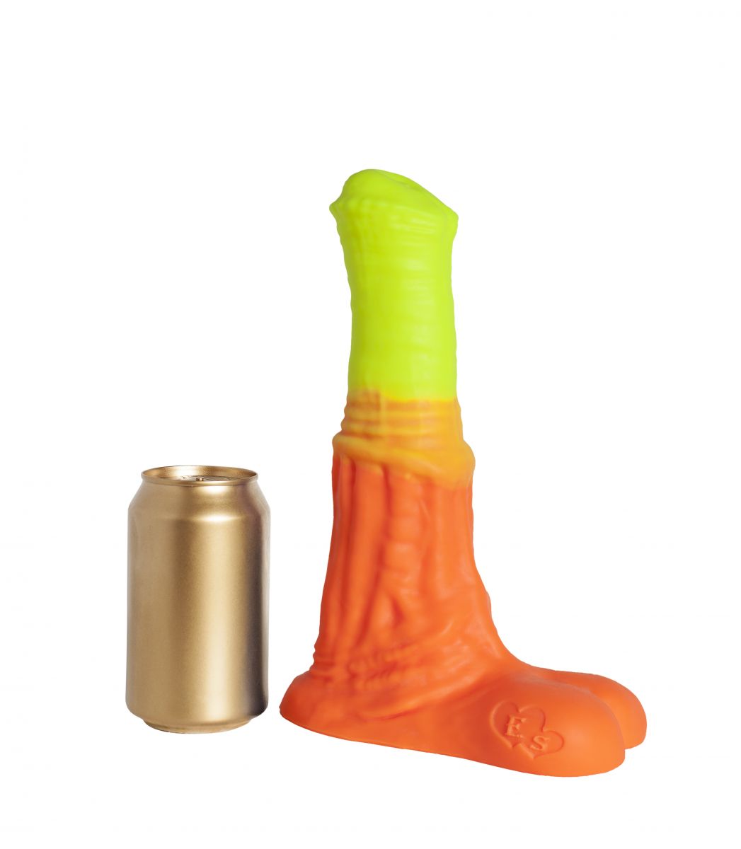 Выполненный вручную «Пегас Large+» от Erasexa – первого и пока единственного российского производителя товаров интимного назначения для поклонников зооэротики – по цвету совсем не похож на фаллос жеребца. А вот во всём остальном – ох! Приплюснутая головка с неровным краем плавно переходит в оранжево-жёлтый крупный ствол с характерным для коней кольцом посередине. Расширяясь книзу, фаллос обещает максимальное приятное растяжение стеночек вагины/ануса при проникновении. Основание с мошонкой не позволит протолкнуть силиконовую и такую приятную на ощупь игрушку слишком глубоко.