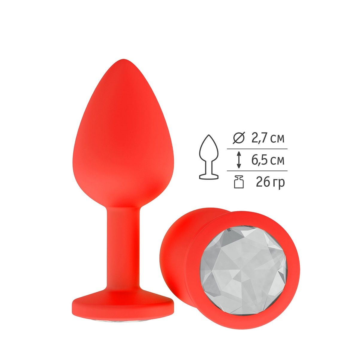 Гладенькая силиконовая пробка с кристаллом в ограничительном основании. Рабочая длина - 6,2 см.
