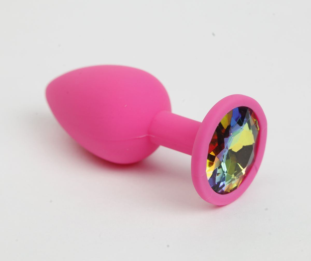 Анальная силиконовая пробка с красочным радужным стразом внесет разнообразие в вашу интимную жизнь. Обладает сглаженной формой, что позволяет обеспечить легкое введение и комфортное длительное ношение. Снабжена ограничительным основанием для безопасного использования. Для хранения предусмотрен тканевый мешочек. Вес - 33 грамма.