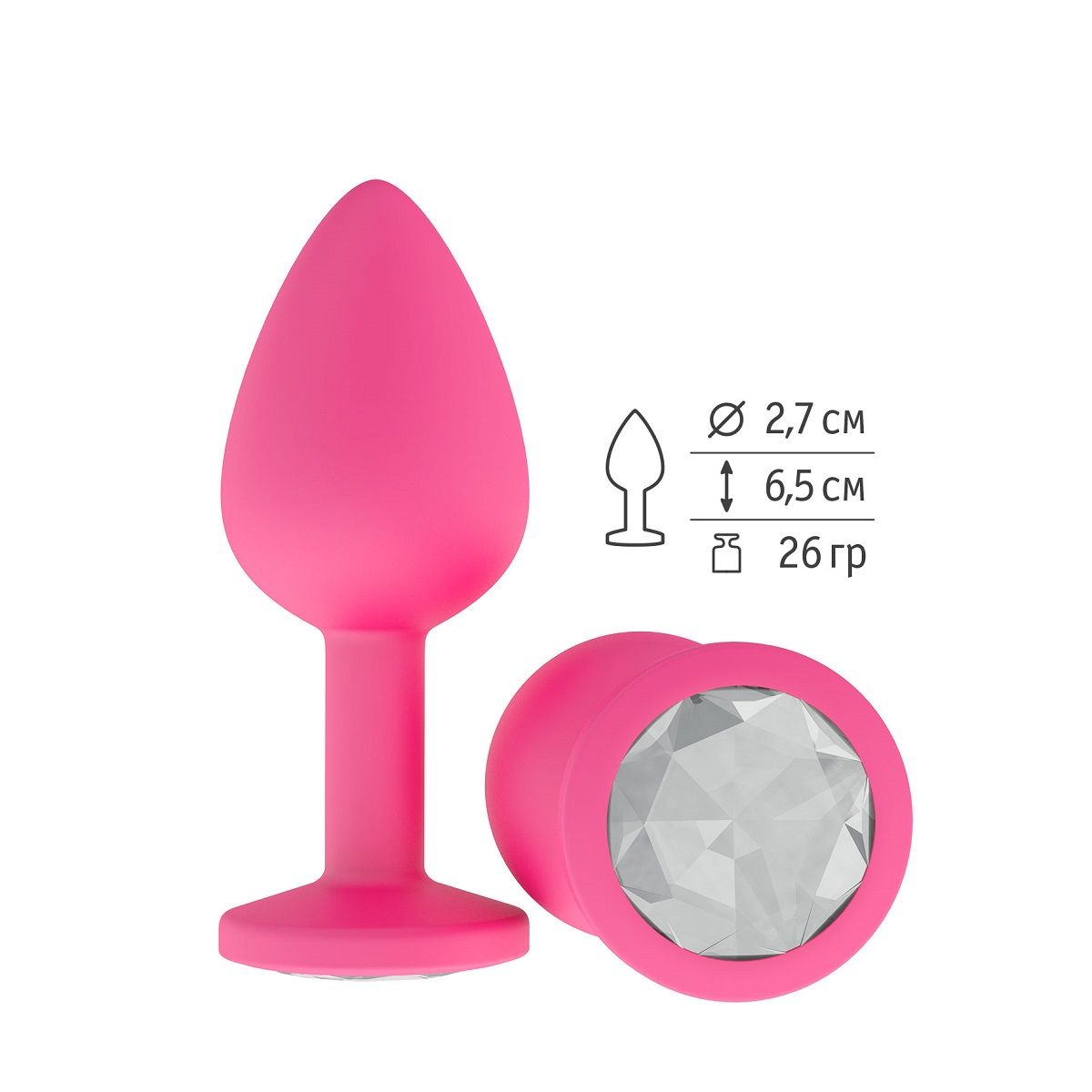 Гладенькая силиконовая пробка с кристаллом в ограничительном основании. Рабочая длина - 6,2 см.