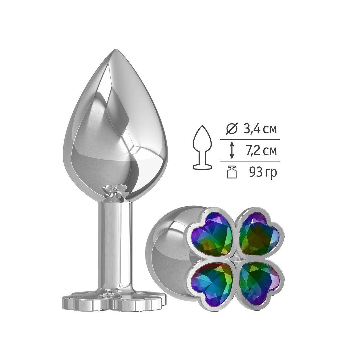 В секс-шопе Orgasmix вы можете купить Средняя серебристая анальная втулка с клевером из радужных кристаллов - 8,5 см. артикул 94675 по цене руб. с доставкой в город Ростов-на-Дону. Мы осуществляем доставку по всей России. Ближайшая дата отправки этого товара . Заказы принимаются круглосуточно через интернет-магазин.