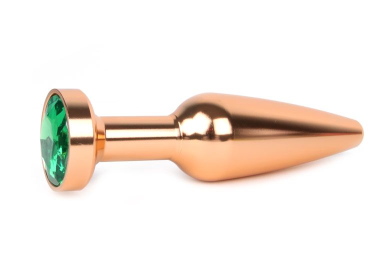 В секс-шопе Orgasmix вы можете купить Удлиненная коническая гладкая золотистая анальная втулка с зеленым кристаллом - 11,3 см. артикул 105769 по цене руб. с доставкой в город Ростов-на-Дону. Мы осуществляем доставку по всей России. Ближайшая дата отправки этого товара . Заказы принимаются круглосуточно через интернет-магазин.