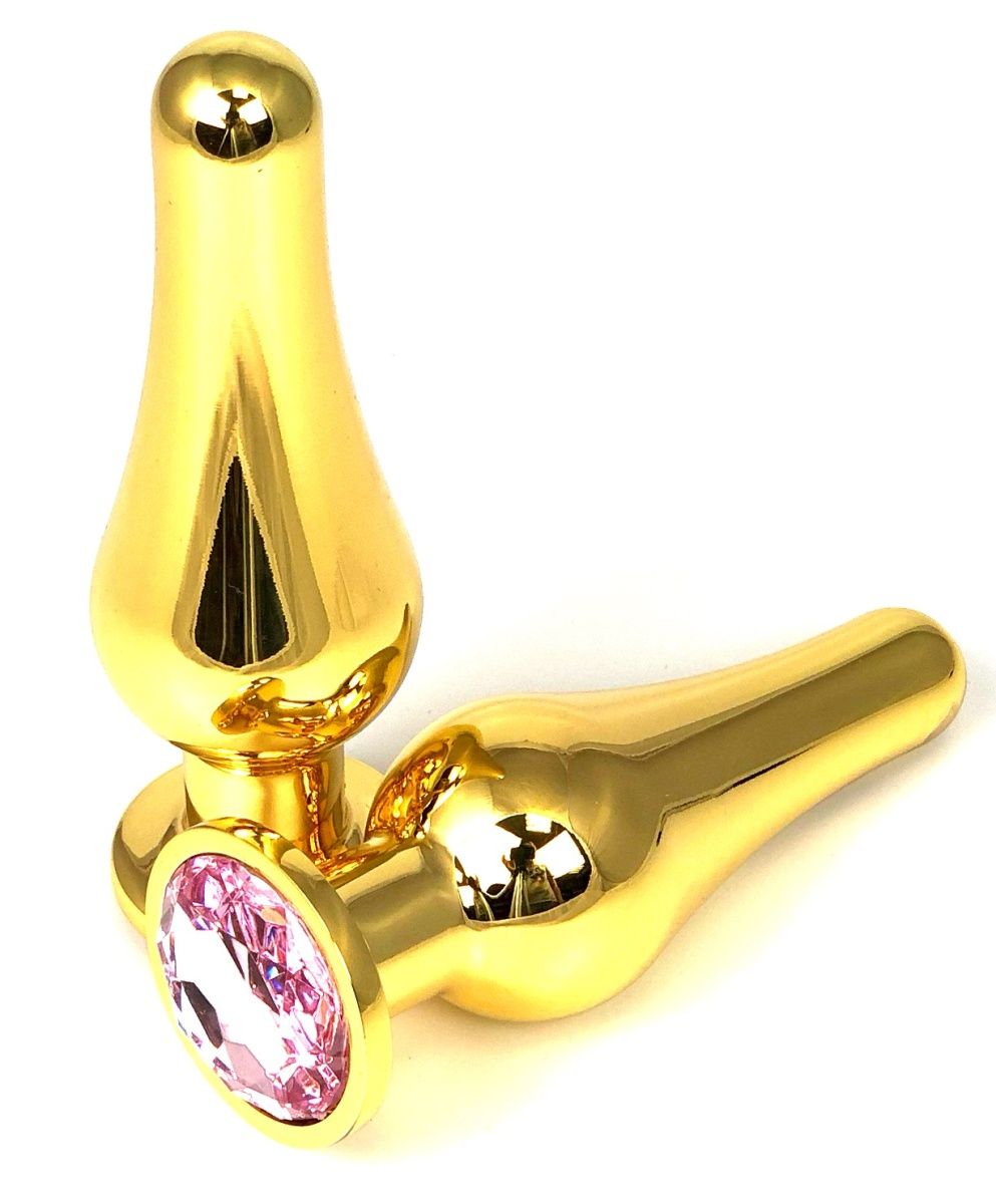 Золотистая втулка в виде наконечника стрелы с эффектным стразом. Идеальная форма для ввода и удерживания внутри для опытных пользователей. Рабочая длина - 10,5 см. Минимальный диаметр - 2 см. Вес - 189 гр.