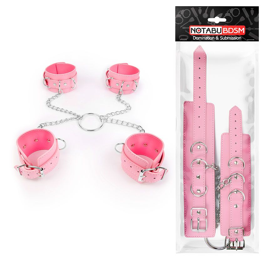 БДСМ-аксессуар придаст остроты сексу, подарит яркие, незабываемые эмоции! В комплект входят наручники и оковы, размер которых регулируется с помощью ремней. При необходимости все изделия скрепляются друг с другом с помощью металлических цепочек. Интимный аксессуар поможет усилить доминирование одного участника любовной игры и подчеркнёт подчинённое положение другого.