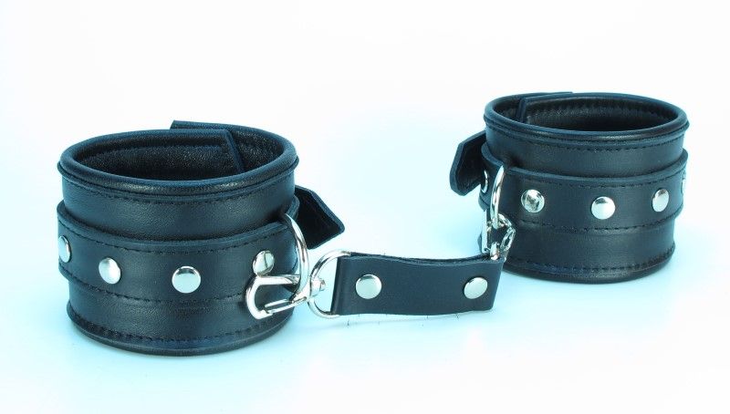 Оживить эротические игры Вам помогут поножи. Этот интимный аксессуар пользуется успехом у мужчин. Выполненные в черном цвете и украшены прочными ремешками. Модный интимный аксессуар не сдавливает и не нарушает кровообращение, так как изготовлен из мягкой кожи. Чтобы любимая никуда не убежала, поножи соединены короткой перемычкой. Длина манжет - 29,5 см., ширина - 5,7 см. Длина перемычки - 6 см.