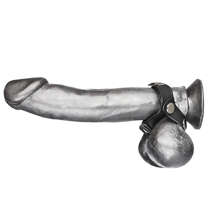 Эрекционное V-образное кольцо из качественной искусственной кожи, зажимающее пенис и мошонку одновременно, а также разделяя яички. Подобное кольцо предотвращает сокращение мошонки во время эякуляции, стимулирует яички, а также пролонгирует эрекцию, добавляет дополнительный объем пенису, утолщая вены, и усиливает оргазм. Диаметр можно варьировать от 4 см до 5 см. Упаковка: Блистер.