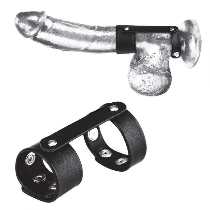 Этот двойной ремешок в виде колец с заклепками обеспечивает поддержку и максимально увеличивает размер и длину. Специальный разъем служит основанием для поддержки эрекции.