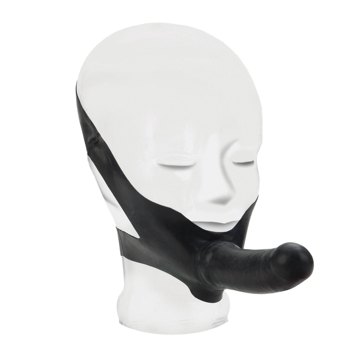 Фаллос, изготовленный из латекса. Имеет широкие ленты-крепления для фиксирования на подбородке, которые растягиваются до необходимого размера. Приятный на ощупь, не имеет швов, гладкий и гибкий.