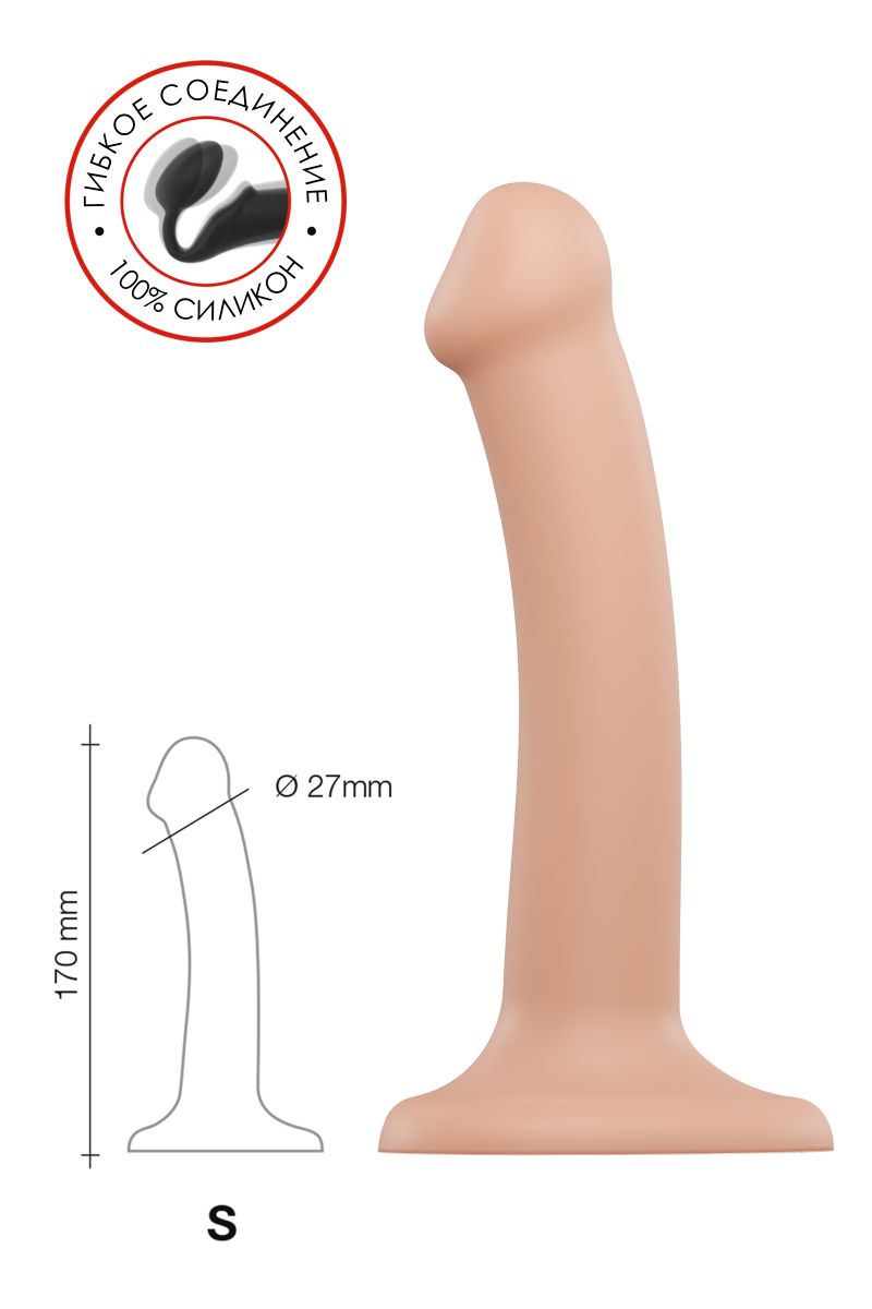 3-слойный материал: гибкий внутренний стержень, жесткий силиконовый слой и дополнительный верхний слой из гипоаллергенного, бархатистого на ощупь силикона Soft-touch. Ручное литье без швов. Может использоваться для вагинальной и анальной стимуляции, а также в качестве насадки для трусиков с фиксацией кольцами. Мешочек для хранения в комплекте.