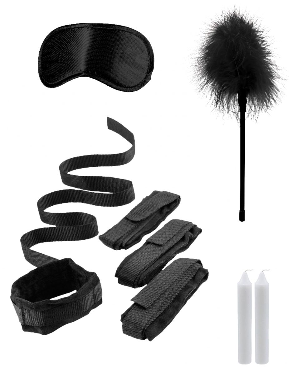 Набор для бондажа Bed Bindings Restraint Kit - набор, состоящий из 6 предметов для эротических ролевых игр и практик БДСМ. В комплекте: наручники, пуховка, маска, 2 свечи. Длина пуховки – 28 см.