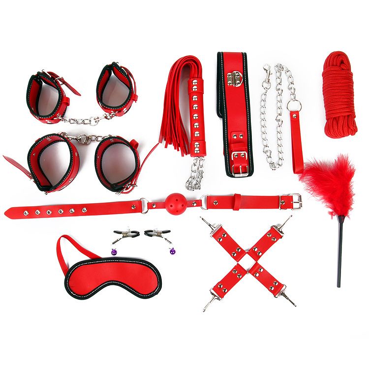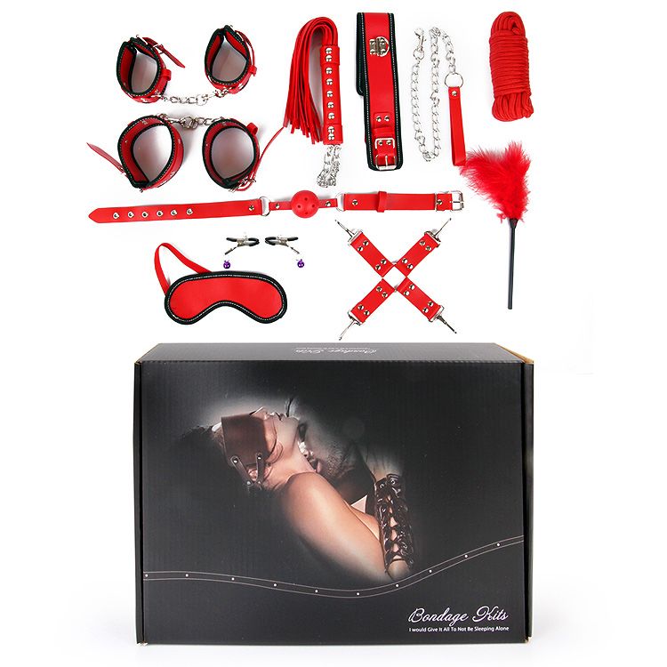 Великолепный набор аксессуаров для любителей БДСМ. В комплект входят наручники, оковы, ошейник с цепочкой-поводком, фиксатор, плеть, кляп, маска, верёвка, зажимы для сосков, щекоталка. Наручники, оковы, ошейник и маска снабжены специальной внутренней накладкой, предотвращающей натирание кожи. Также изделия имеют возможность регулирования размера. Зажимы для сосков украшены разноцветными бусинами, которые украсят грудь. Плеть-флоггер состоит из хвостов и удобной рукоятки с металлическими вставками и петлёй для подвешивания на крючок, щекоталка – из удобной ручки и пушистых перьев. Кляп оснащён шариком с отверстиями для дыхания.Набор упакован в большую коробку. Длина хвоста флоггера - 24 см., рукояти - 15 см.
