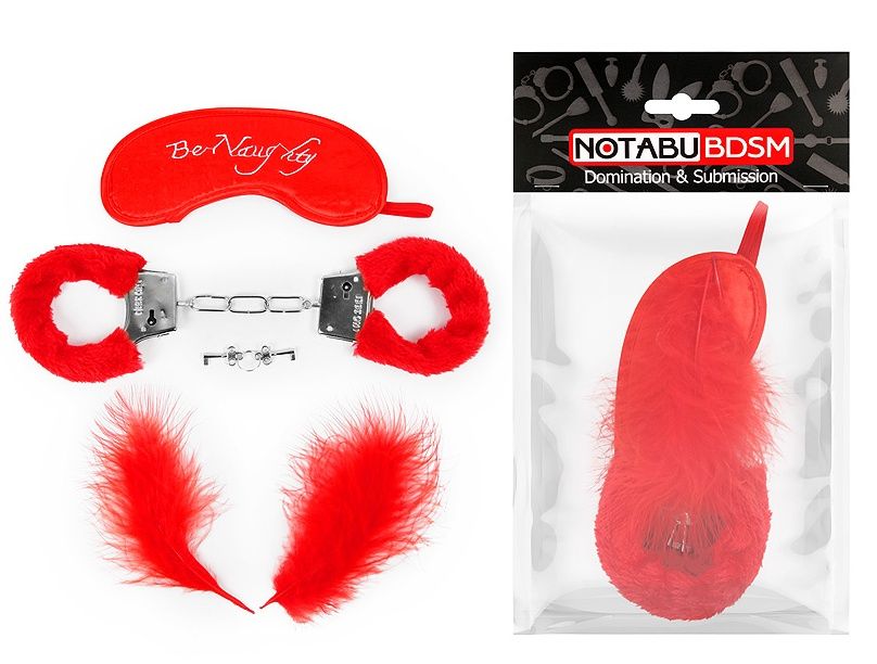 Великолепный набор аксессуаров для любителей БДСМ. Позвольте испытать себе новые ощущения! В комплекте: наручники, маска, 2 пера.