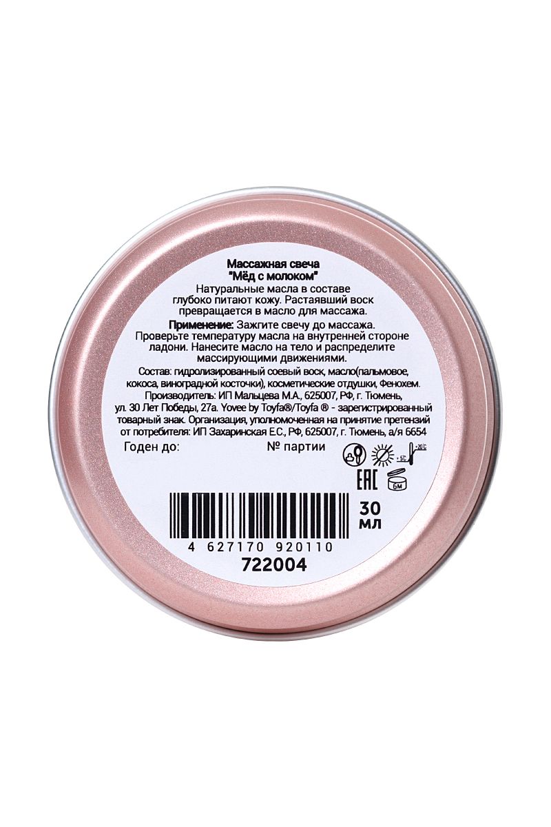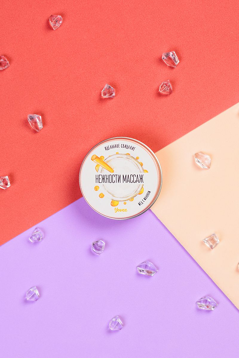 Натуральные масла в составе глубоко питают и увлажняют кожу. Растаявший воск превращается в масло для массажа. Свеча станет идеальным аксессуаром для романтического свидания. Подготовьтесь к свиданию: после приятной и расслабляющей ванны зажгите свечу. Насладитесь нежными ароматами мёда с молоком, которые наполнят в. Предложите партнеру расслабиться в ожидании массажа. Погасите свечу и немного подождите, пока масло остынет. Лейте масло вдоль спины медленно, а затем начните с лёгких массирующих движений. Сделайте массаж своим обнаженным телом — так он станет ещё более интимным и чувственным. Такое свидание останется в памяти надолго!Свеча подарит незабываемые ощущения, после которых вам гарантированы нежные и мягкие прикосновения!