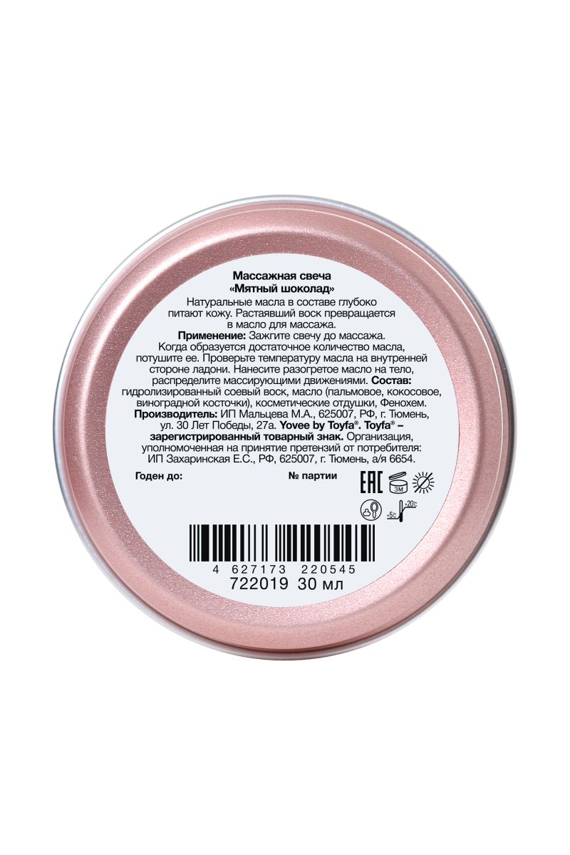 Натуральные масла в составе глубоко питают и увлажняют кожу. Растаявший воск превращается в масло для массажа. Свеча станет идеальным аксессуаром для романтического свидания. Идея для свидания: устройте романтический вечер и угостите своего партнера шоколадным фондю. Зажгите свечу и предложите партнеру расслабиться в ожидании массажа. Затушите свечу и немного подождите, пока масло остынет. Лейте масло вдоль спины медленно, а затем начните с легких массирующих движений. Сделайте массаж своим обнаженным телом - так он станет еще более интимным и чувственным. Такое свидание останется в памяти надолго! Свеча подарит незабываемые ощущения, после которых вам гарантированы нежные и мягкие прикосновения!