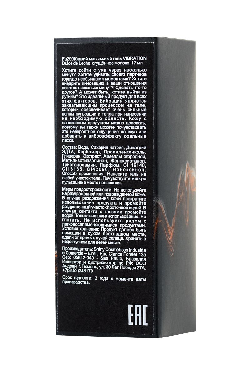 Возбуждающий массажный гель с вибрирующим эффектом Intt Vibration Dulce de Leche - это яркие эксперименты с сумасшедшими эмоциями. Эффект вибрации добавляет массажу необычные ощущения - приятная пульсация пробуждает каждую клеточку тела и задает ритм наслаждению. Слегка разогревающий эффект распаляет желание и заставляет эрогенные зоны переключиться в режим полной боевой готовности. Потрясающий вкус сгущенного молока делает поцелуи, прелюдию и оральный секс настоящим удовольствием. Супергладкая текстура мягко обволакивает тело, позволяя рукам легко и бесконечно нежно скользить по нему. Клинически протестированный состав Intt Vibration Dulce de Leche безопасен для организма. Не вызывает аллергии. Не оставляет липких следов. Просто смывается водой. Позвольте себе волнующее приключение с INTT.
