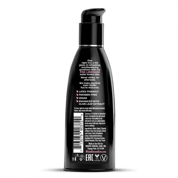 Изысканный лубрикант на водной основе с ароматом сладкого розового лимонада для изумительных эротических ласк. При производстве Wicked не используется сахар, сладость придает выжимка из растения стевия, благодаря чему лубрикант не оставляет послевкусия, не липнет и дарит удивительное ощущение скольжения. В составе лубриканта есть экстракт оливкового листа, который является природным обеззараживающим средством, мягкая формула подходит даже для чувствительной кожи. Удобная упаковка с помпой поможет насладиться моментом близости в полной мере. Не содержит парабенов, безвреден для латекса.