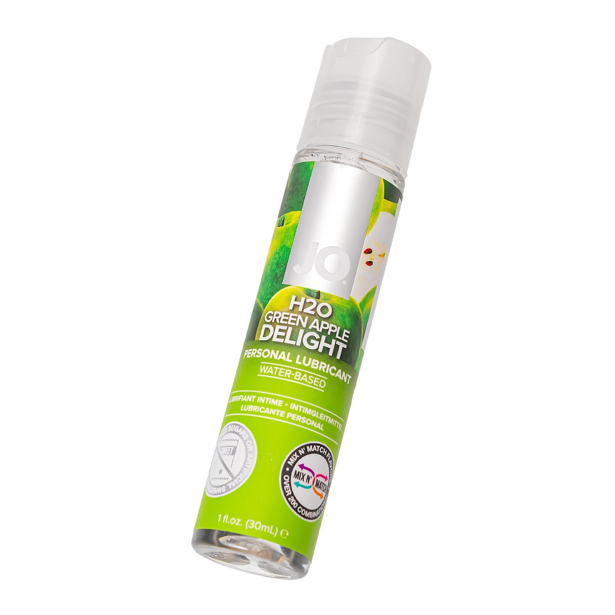 Ароматизированный любрикант на водной основе JO Flavored Green Apple - превосходный аромат грешного восторга и длительное скольжение. Входят только пищевые ароматизаторы и натуральные вкусовые добавки, которые не содержат сахара, не оставляют послевкусия. Безопасен для применения, при попадании в желудок не вызывает раздражения. Совместим с алкоголем и пищевыми продуктами. Аромат зелёного яблока влияет на ту часть мужского мозга, которая отвечает за сексуальное влечение. Свежий и бодрящий аромат помогает снять усталость и вернуть силы. JO рекомендуется во всем мире врачами и фармацевтами. Совместим с любыми презервативами и сексуальными игрушками.
