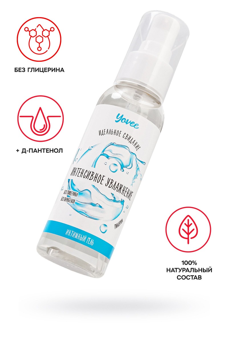 Интимный гель Yovee «Интенсивное увлажнение» восполняет уровень естественной смазки, создает мягкое и комфортное скольжение без ощущения липкости. Благодаря натуральному составу смягчает и увлажняет, улучшает эластичность кожи и слизистой, снимает раздражение, устраняет сухость влагалища. Легко смывается водой, не оставляет следов на одежде и постельном белье. Подходит как для вагинального, так и для орального секса. Совместим со всеми видами презервативов и игрушек для взрослых. Простой и безопасный состав: вода гидроксиэтилцеллюлоза - стабилизатор эмульсий, регулятор вязкости Д-пантенол и гиалуроновая кислота препятствуют потере влаги, защищают слизистые, запускают процесс регенерации тканей сорбат калия и бензоат натрия – безопасные пищевые консерванты, разрешенные в натуральной и органической косметике лимонная кислота помогает поддерживать оптимальный уровень рН, является естественным консервантом.