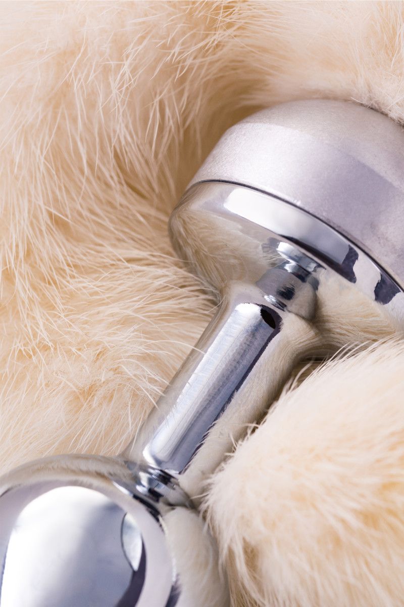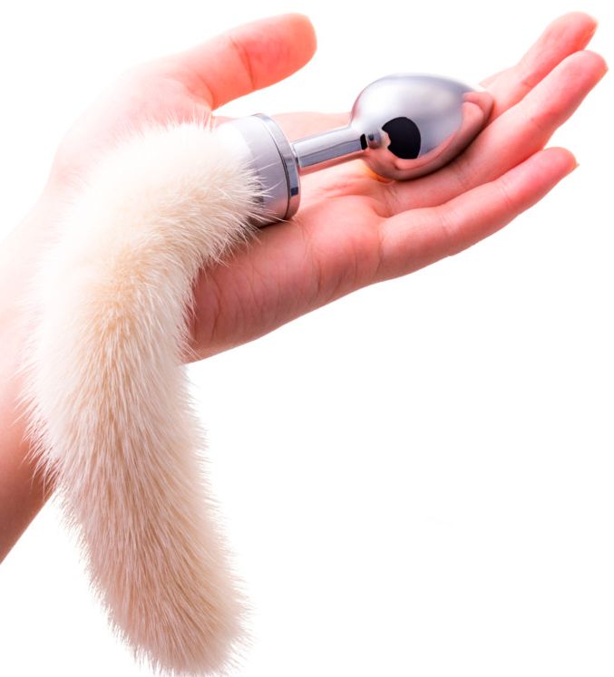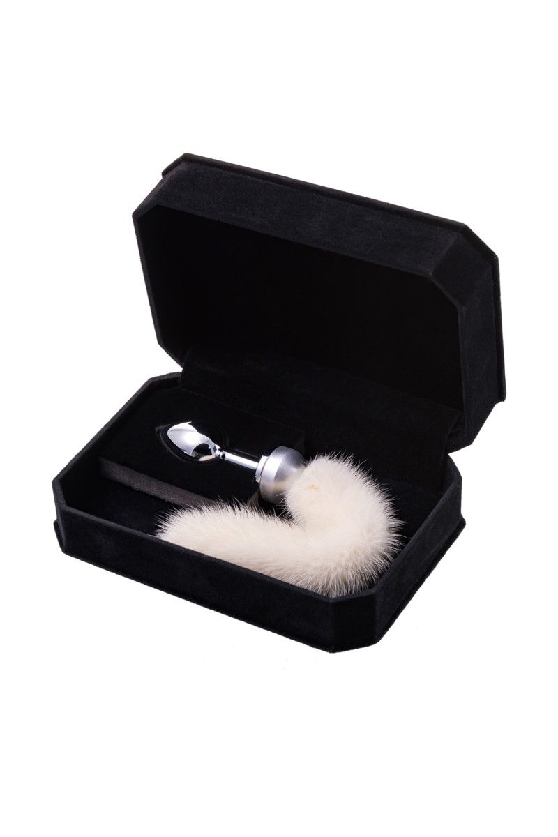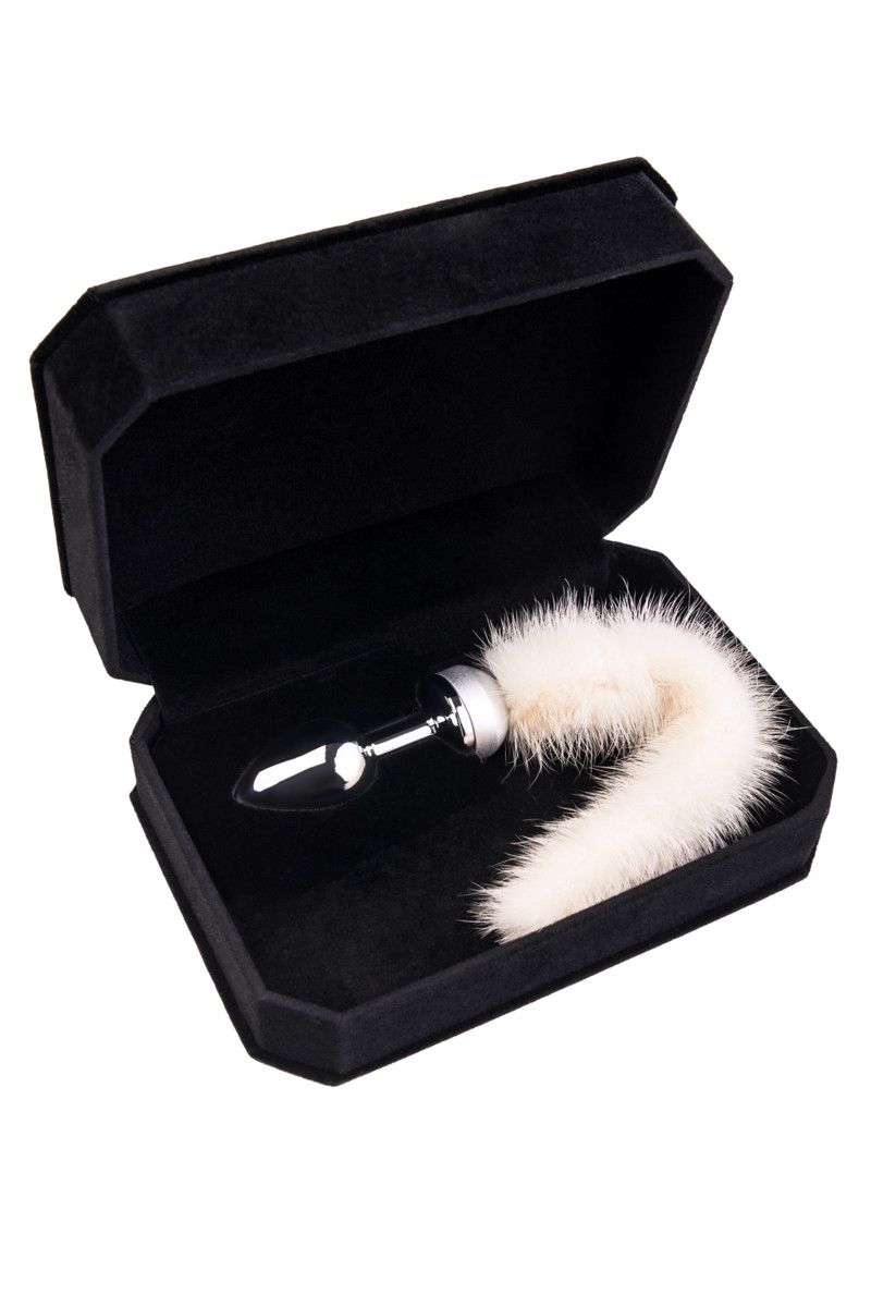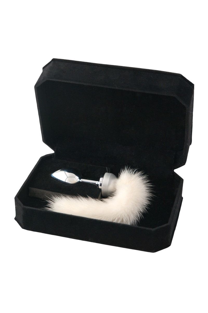 Анальная втулка маленькая с белым хвостом в коробке. Поставляется в подарочной упаковке.