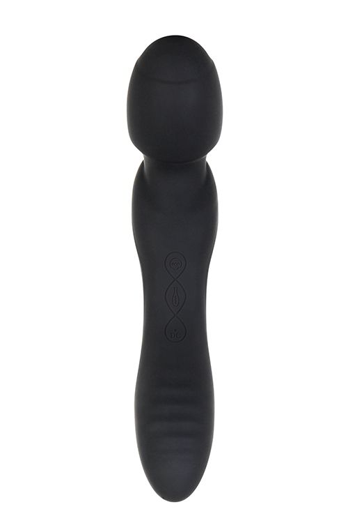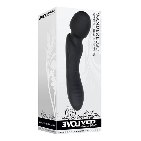 Черный двусторонний жезловый вибратор Wanderlust. Круглая головка для клиторальной стимуляции с одной стороны и рельефная ручка для вагинальных проникновений с другой. Мощный мотор обеспечивает 7 скоростей. 49 уникальных комбинаций вибрации. Легкое управление кнопками по центру игрушки. Сделан из люксового силикона. Водонепроницаем.