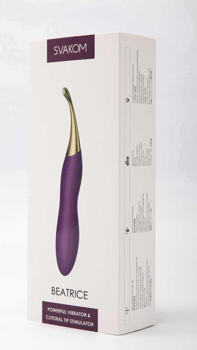 Встречайте Beatrice - элегантное и многофункциональное дополнение к вашей коллекции. Beatrice - это универсальная игрушка для различных видов стимуляции. Сменные насадки помогут вам воплотить ваши фантазии в жизнь и подарить моменты блаженства. Мощный мотор обеспечит стойкую вибрацию (5 режимов и 5 скоростей), даже если вам нравится интенсивная стимуляция. Благодаря защищенному зарядному порту Beatrice не боится непредвиденных ситуаций и станет вашим партнером в любой ситуации и даже в путешествии. Время зарядки - 1 час. Время работы - 2 часа.