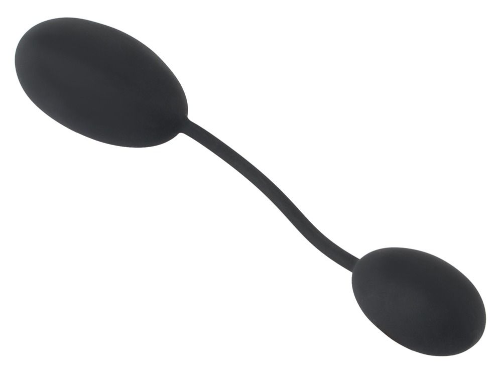 Черные яички на гибкой связке Pussy & Ass Balls. Могут использоваться вагинально и анально, каждым и партнеров. Длина большого яйца - 7 см., диаметр - 3,9 см. Длина малого яйца - 5 см., диаметр - 2,9 см.