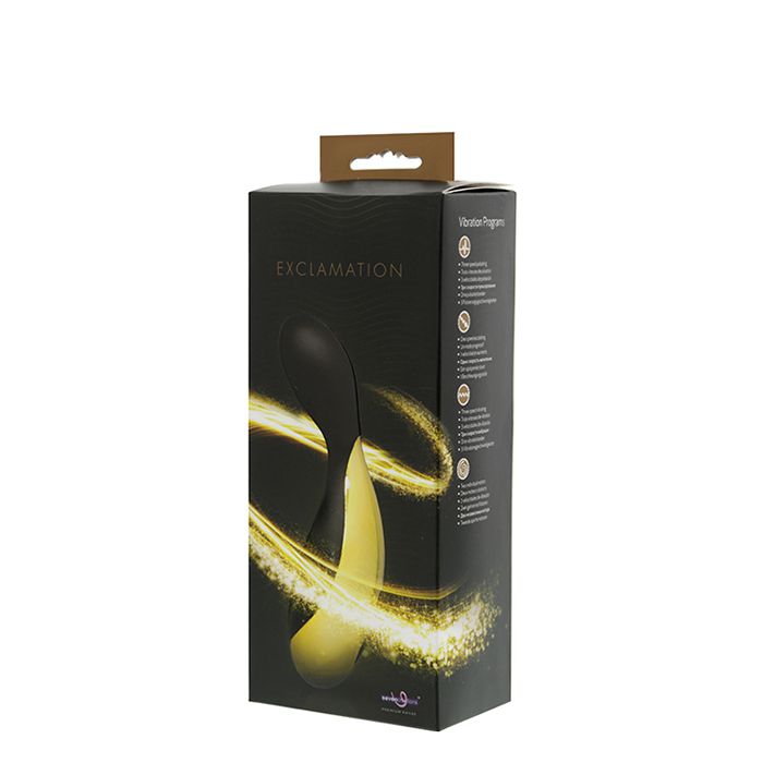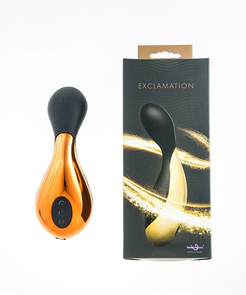 Чёрно-золотой вибромассажёр оригинальной формы с 2 моторами. Кол-во скоростей вибрации - 2, режимов вибрации - 1.