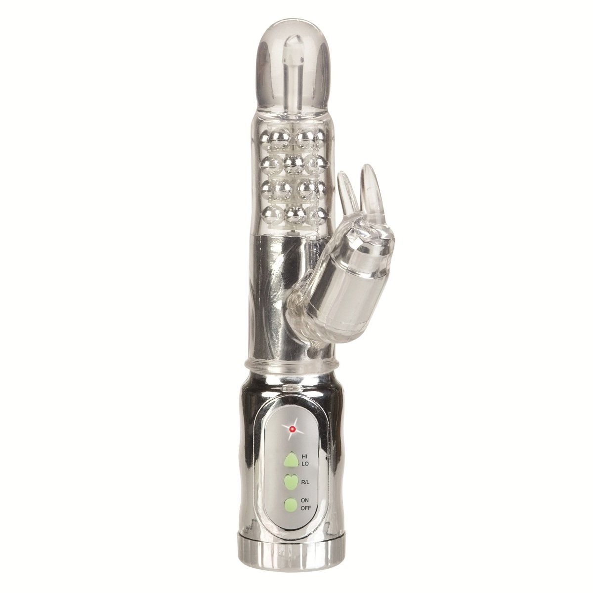 Вибратор с двумя функциями - ротацией и вибрацией. Головка вибратора вращается, а клиторальный стимулятор вибрирует. Включение и выключение игрушки регулируется одной кнопкой.