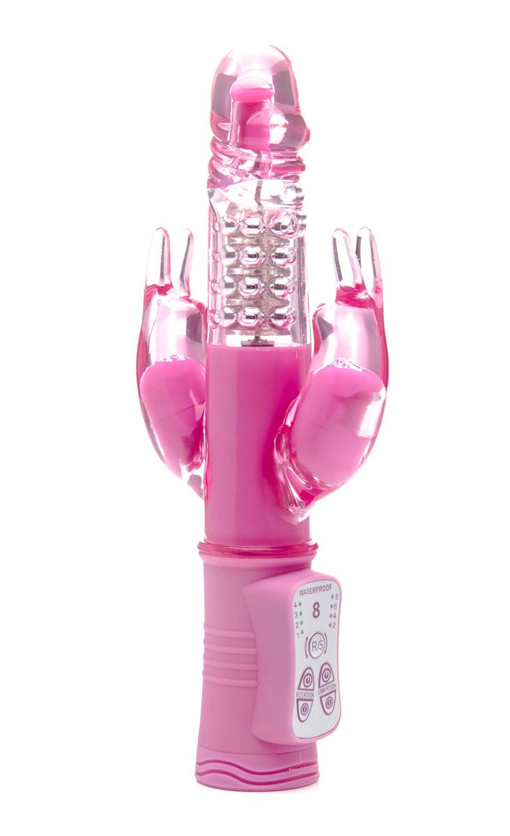 Хай-тек вибратор для страстных ценительниц многофункциональных и стильных секс-игрушек. Стимулятор состоит из трех элементов – фаллоимитатора с сочной головкой посередине и двух отростков для интенсивных ласк клитора и ануса в виде зайчиков. Вибратор целиком водонепроницаем и оснащен 8 режимами работы (ротация и вибрация). Режимы управляются на рукояти вибратора. Рабочая длина - 11,5 см. Батарейки в комплекте.