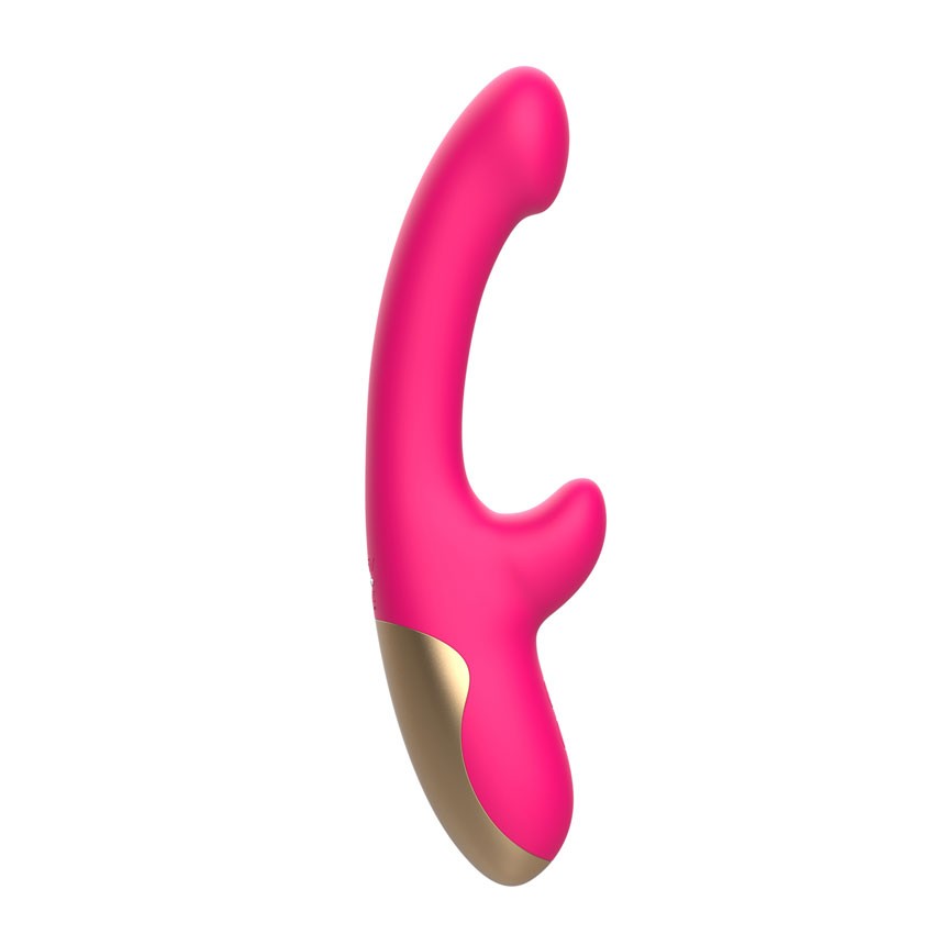 Розовый изогнутый вибромассажер. С коготком для клиторального массажа. 10 режимов вибрации. Рабочая длина - 11,4 см.